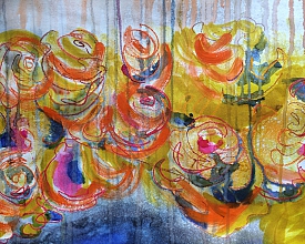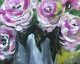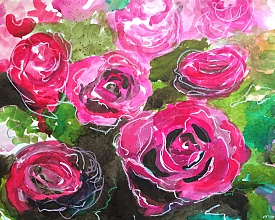 Voor de expositie van Woonplaza BinnenUit "Kunstspeuren in de Za(a)k " en de open atelierroute in februari 2017 heb ik deze werken gemaakt om de prachtige bossen rozen, die ik in die tijd ervoor heb gekregen, voor altijd vers te houden.